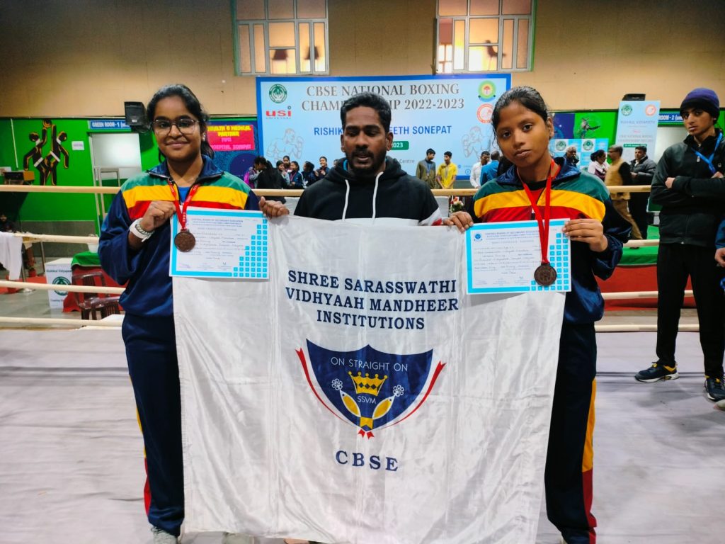 Boxing is the toughest sport in the world. Its a pride that the students of SSVM has brought Laurels to the school by creating a Bench Mark winning CBSE National Boxing Championship 2022-2023, competing with the strong 1600 competents. The jubilant competition was held at Rishikul Vidyapeeth Sonepat – Haryana from11th to 14th January. Bagging the bronze medals under 17 and 19 category they have laid a path for the future success.