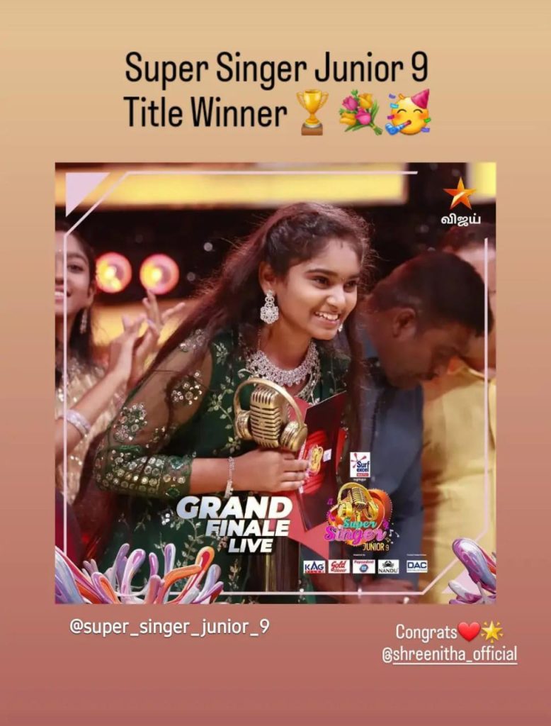 A moment of pride for SSVM .As we wished, our student Shreenitha of SSVM School , Mettupalayam has won the title Super Singer Junior. Congratulations on her well-deserved victory in the musical show! Her talent and dedication truly shone on stage. May this success be the prelude to a harmonious journey ahead!